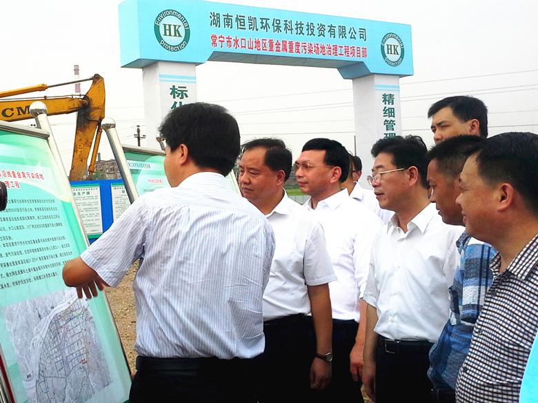 8月25日,省委常委、常務(wù)副省長(zhǎng)陳肇雄一行深入我公司負(fù)責(zé)的常寧市水口山地區(qū)重金屬重度污染土壤治理工程項(xiàng)目一線視察工作。衡陽(yáng)市委書(shū)記、市人大常委會(huì)主任李億龍,市委副書(shū)記、市長(zhǎng)周海兵一同參加調(diào)研。恒凱公司副總經(jīng)理駱金輝陪同調(diào)研。