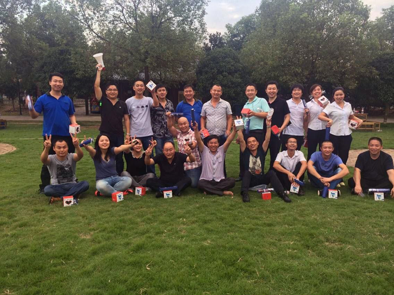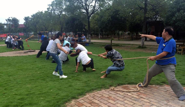本次素質(zhì)拓展為兩隊對抗,分別完成三個項目比賽,依次是集體跳繩、過山車和拔河。集體跳繩考驗每個隊員的配合度,團(tuán)隊中只要有一人失誤,整個項目就得重新開始;過山車項目體現(xiàn)的是方向控制、協(xié)同作戰(zhàn)在團(tuán)隊中的重要性;拔河則是雙方力量的對比。兩隊人馬竭盡全力在草地上拚搏,周圍加油聲、喝彩聲響徹云霄。經(jīng)過兩小時的激烈角逐,以宋惠鋒為隊長的一隊最終取得勝利。