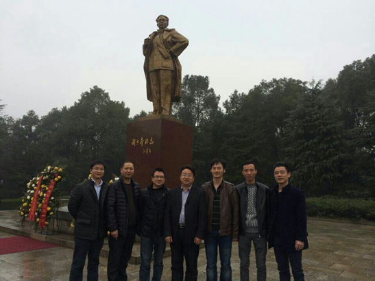圖為劉總與周局長一行在劉少奇銅像前合影