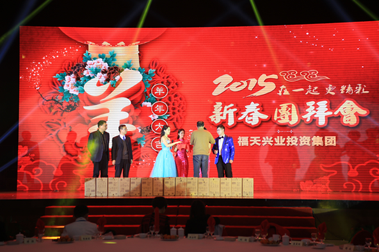 2015年 2月4日,福天興業(yè)投資集團2014總結(jié)表彰暨2015年新春團拜會在長沙圣爵菲斯大酒店隆重舉行。本次年會以“在一起,更精彩”為主題,寓意集團全體同仁團結(jié)一致,共同鑄造集團的精彩與輝煌!集團全體領(lǐng)導(dǎo)、員工及外協(xié)單位嘉賓共800 余人參加了本次年會。
