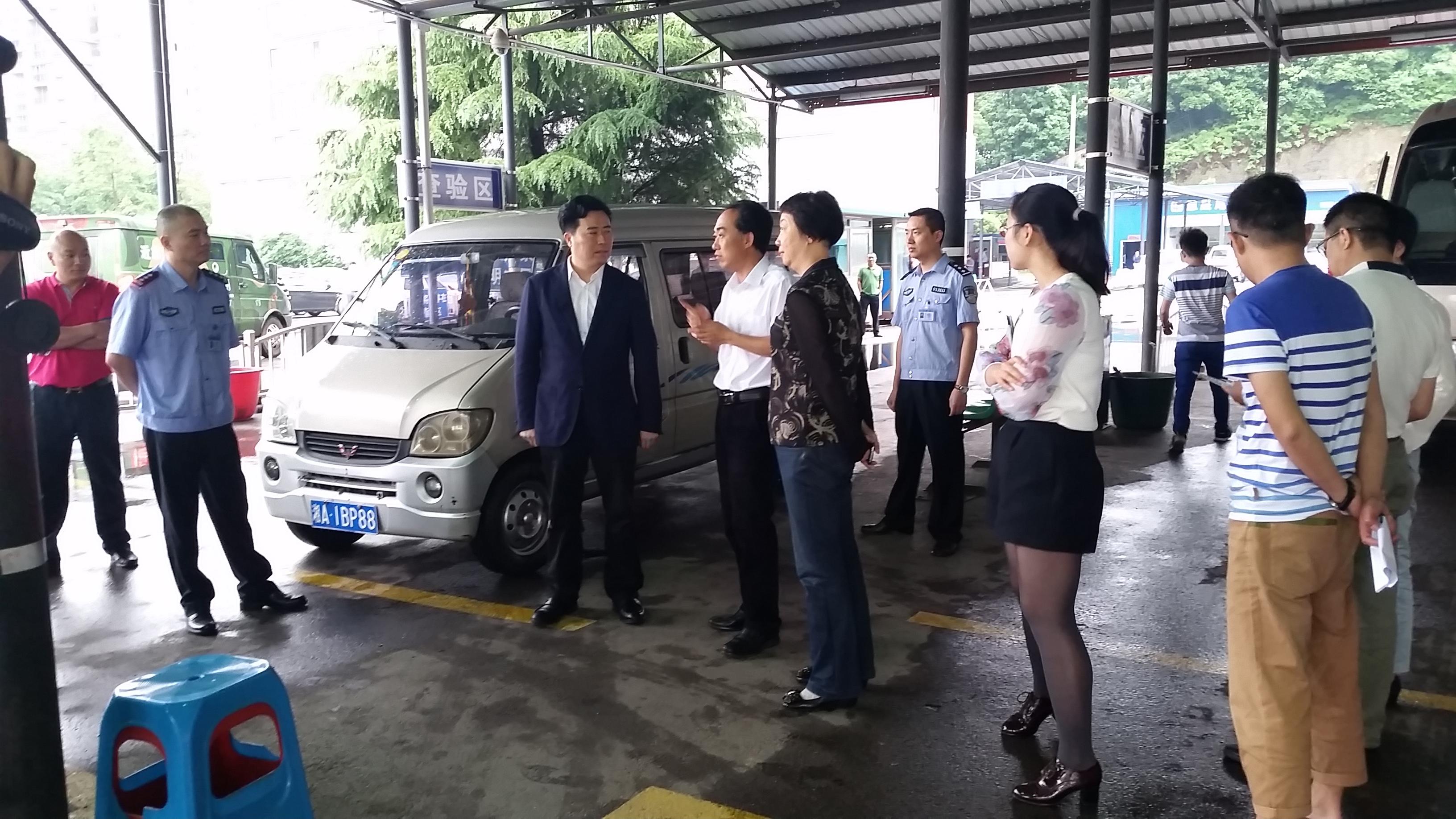 2015年5月8日上午,長沙市副市長黎春秋蒞臨我公司城西站調(diào)研。長沙市環(huán)保局局長王小平、副局長劉詩題陪同。長沙市交警支隊(duì)車管所所長莫隆鈞、長沙市尾氣監(jiān)管中心主任劉勁、我公司尾氣運(yùn)營中心總經(jīng)理陳敏、副總經(jīng)理羅垚負(fù)責(zé)接待。