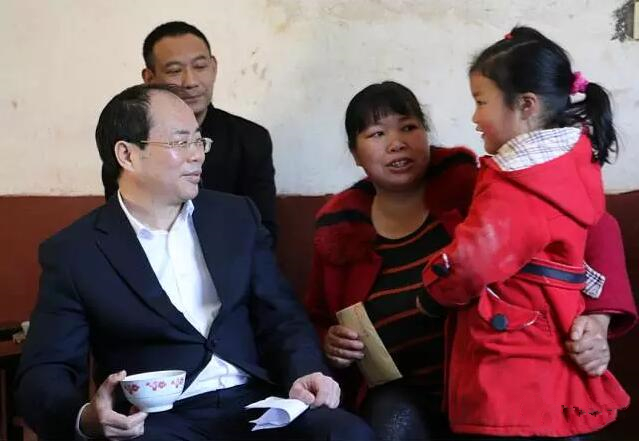左一:長(zhǎng)沙市市委常委、市委統(tǒng)戰(zhàn)部部長(zhǎng)譚小平; 右一:幫扶對(duì)象王偉初及家人