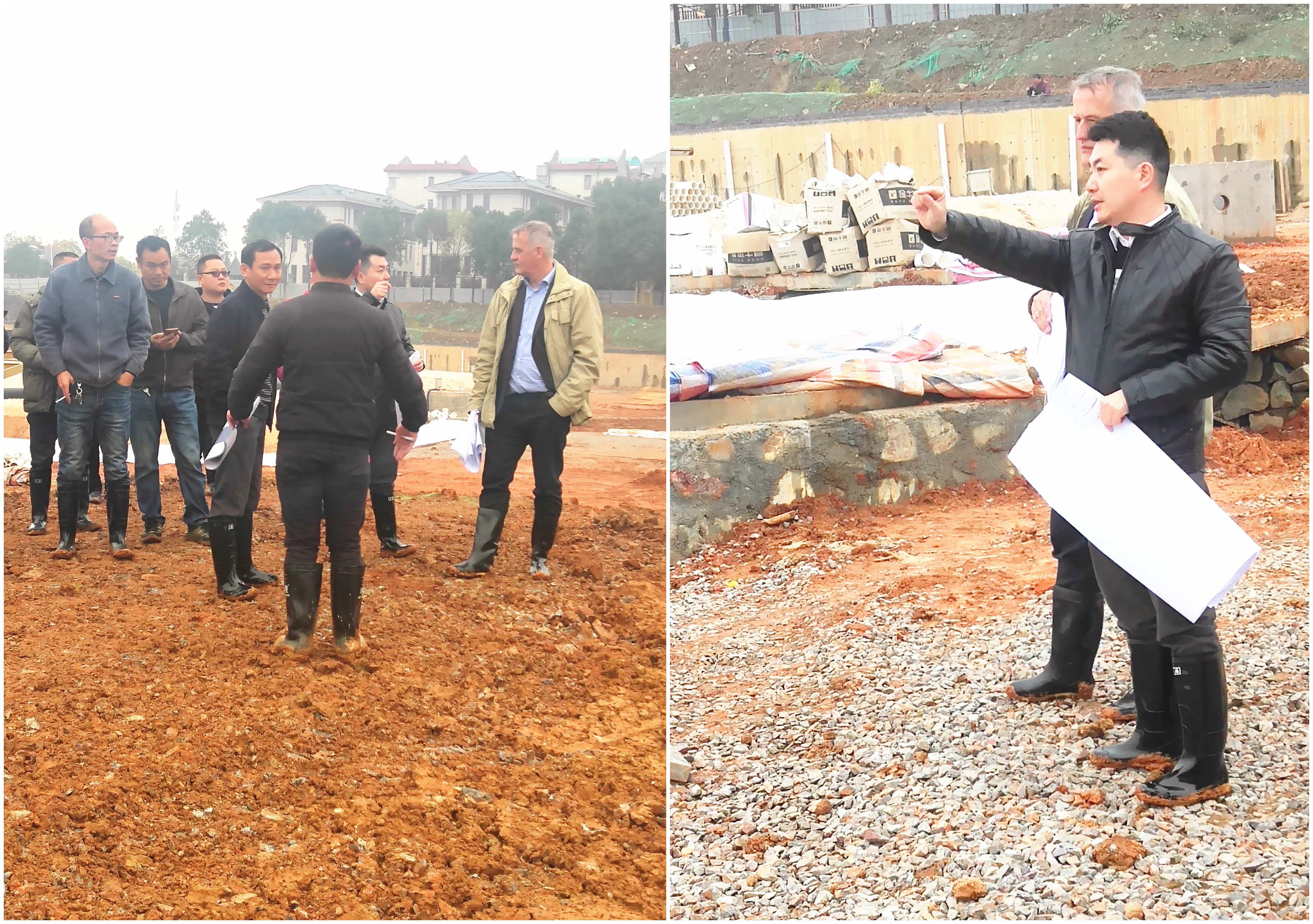 2018年11月20日,德國水治理專家彥斯·科魯曼博士、岳陽市行政執(zhí)法局局長張建輝、設施科科長鄭建良、設施科副科長陳曼霞,岳陽規(guī)劃勘測設計院總工程師魯復查、園林景觀室主任王迎春、給排水室主任顏昌本和監(jiān)理單位總監(jiān)理工程師彭送橋等領導蒞臨恒凱環(huán)保承建的岳陽市蛇皮套和三大湖綜合整治項目現(xiàn)場指導工作,項目經(jīng)理劉建彬向來賓介紹了該項目的基本情況和施工進度。