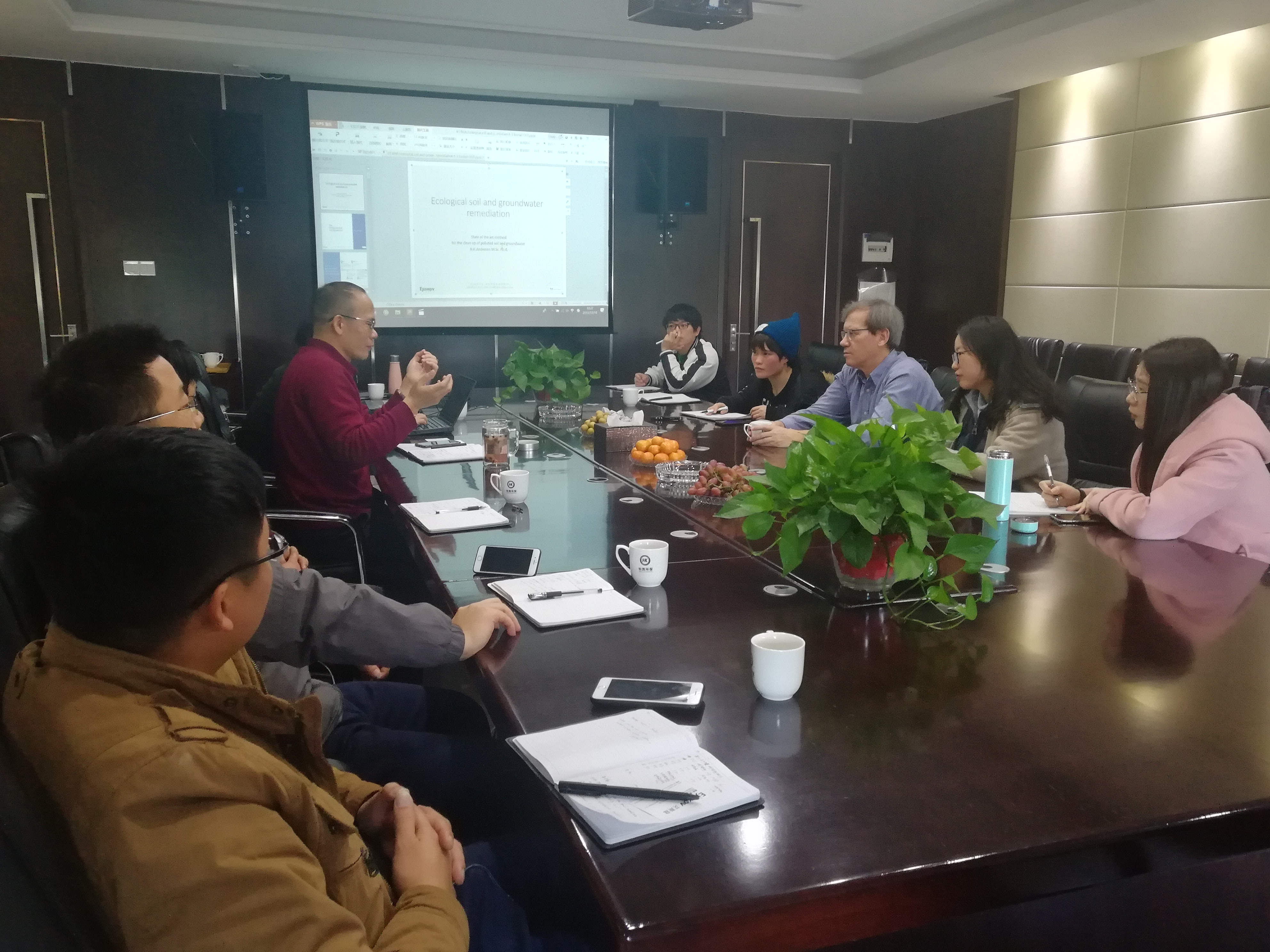 會(huì)上,我司總工程師羅文連先生向艾斯寇公司首席技術(shù)官Bjørn H.Andersen先生介紹了公司的規(guī)模和重點(diǎn)發(fā)展領(lǐng)域;隨后艾斯寇公司首席技術(shù)官Bjørn H.Andersen先生介紹了其公司在污染場(chǎng)地修復(fù)和土壤修復(fù)領(lǐng)域的研究及其所應(yīng)用的技術(shù)與設(shè)備。在Bjørn H.Andersen先生分享過后,總工程師羅文連先生帶領(lǐng)相關(guān)技術(shù)人員與Bjørn H.Andersen先生就汞污染土壤修復(fù)以及有機(jī)污染場(chǎng)地治理進(jìn)行了深度的交流與溝通。